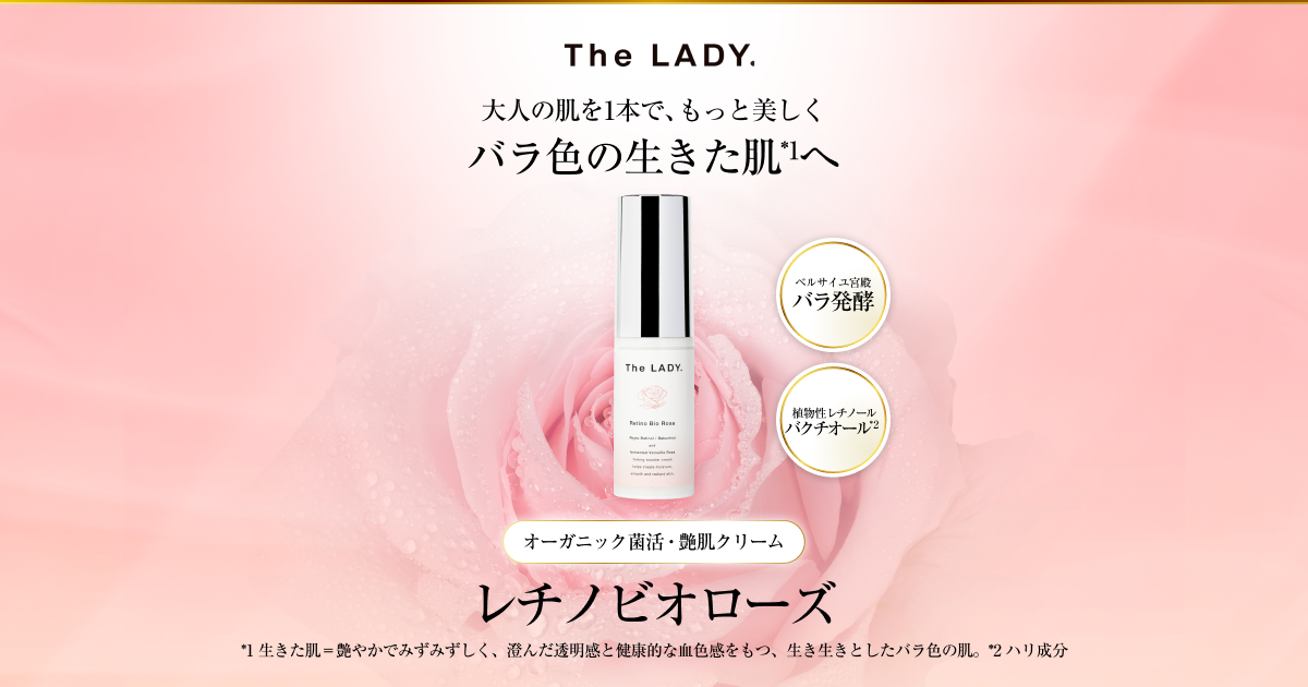 The LADY. レチノビオローズ - オーガニック菌活・艶肌クリーム大人の肌を1本で、もっと美しく バラ色の生きた肌*へ *生きた肌=艶やかでみずみずしく、澄んだ透明感と健康的な血色感をも...